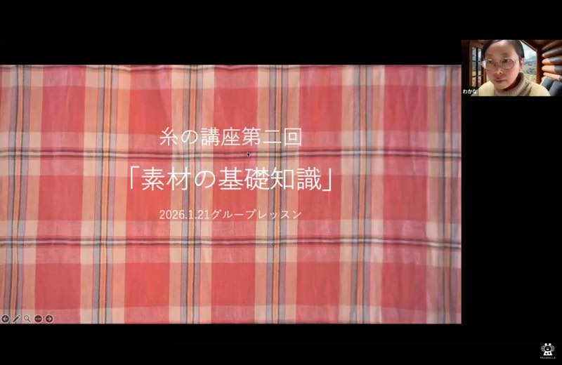 「糸の講座第2回素材を知ろう!」というタイトルで、糸の素材を知る事で編み物はもちろん、自分の生活を豊かに、そして地球を豊かにも出来るよという内容でした。